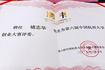 未末設計創(chuàng)始人總經理褚志華先生受杭州市政府、杭州市大學生創(chuàng)業(yè)大賽組委會邀請受聘為中國杭州大學生創(chuàng)業(yè)大賽專家評委。